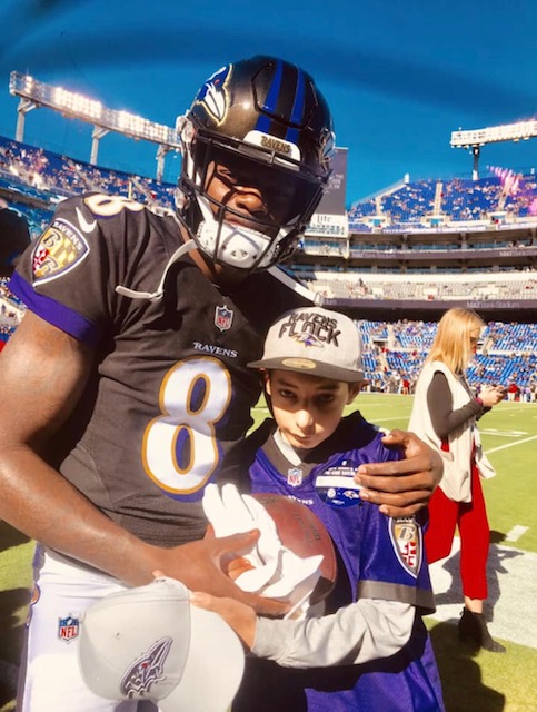 He is on his third round of treatments, but his medical team feels that the current option may be his last chance to overcome the illness. Fearing that his case may be terminal. MCF partnered with the Baltimore Ravens to allow Justin to attend November’s matchup of the Ravens and Steelers. Ravens quarterback Lamar Jackson and linebacker CJ Mosley took time to meet Justin, sign some memorabilia and offer words of encouragement.
